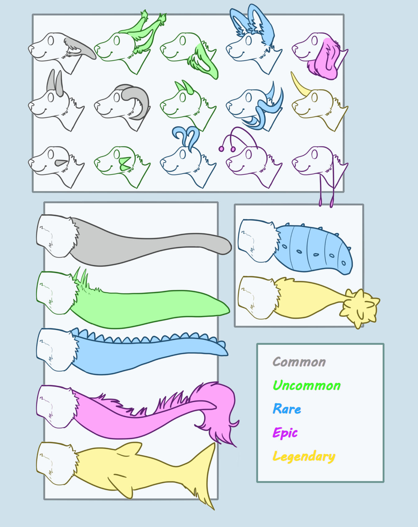 Common, uncommon, rare and Epic stuffs, and 1 legendary stuff